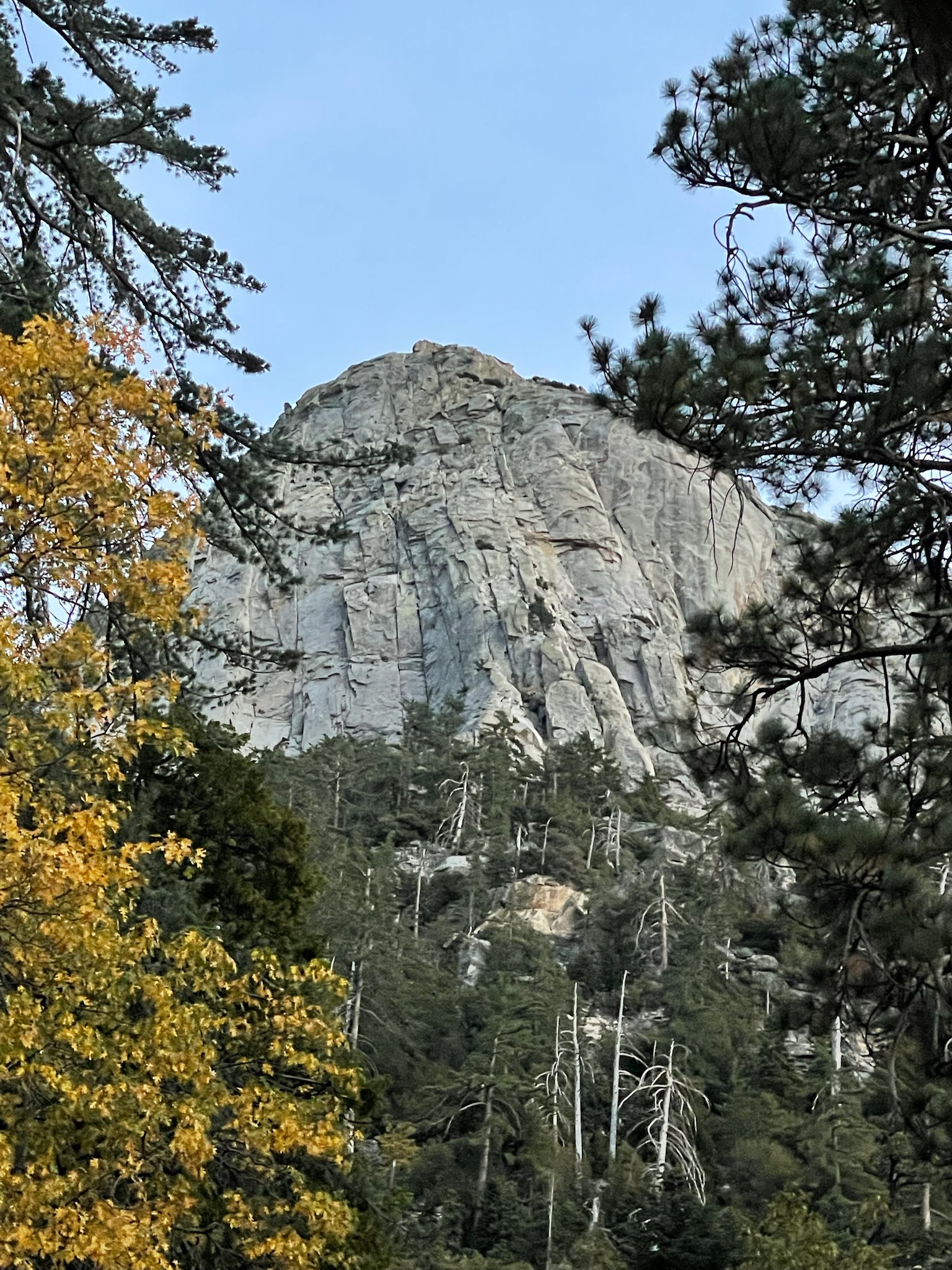 After some initial success with multipitch climbing, Trevor and I set out to get more practice out in Tahquitz. The best part of this crag is its abundant and high quality moderate routes – and by moderate I really mean the easiest it gets. As true beginners we set out on trying to climb the remaining two routes rated 5.4, starting with White Maiden’s Walkway. This was the benchmark 5.1 in the original list of climbing grades for Tahquitz and navigated its way through the easiest path up the center (Maiden) buttress of the spire. Although it was rated 5.4 it was a step up from our first climb on the Trough, which was shorter and technically easier. Plus WMW had a psychological crux on pitch 4 – an exposed section called the ‘doubtful corner’ which required a committing step over to a ledge without any great handholds. Little did we know at the time the real crux would be route finding along the ~800 ft buttress, which had plenty of good looking sections that climbed much harder than 5.4. Despite this, we both thought this was a great next objective and were pumped to make it back to Tahquitz for our third multipitch climb.