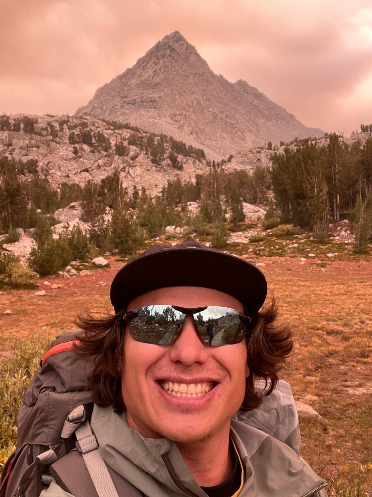 Without snow to cover these boulder fields movement is pretty slow compared to a trail no matter what we tried. Going to fast was pretty risky for injury potential so we just maintained as fast a pace as we could and would sometimes swaps leads to boost energy. Eventually we made it down to camp at around 4pm, nearly 12 hours since we had woken up. Once there we took another well earned break and were greeted by some older guys who were stoked that we made it back from the ridge okay. They were clearly nostalgic from their days of climbing and we exchanged some stories back and forth of our climbing experiences. It was a cool moment of celebration and we got to enjoy the fact that we did what we set out to do. As we broke down camp, Trevor even took a plunge in the lake and I took a few minutes to relax. After this was what I thought would be a short hike. As usual it still felt long and strenuous having to carry a big pack and having been moving for so much time. The way back smoke clouds still filled the whole valley and encouraged me to move fast. Some sort sections of uphill scattered about were brutal and I was exhausted again towards the end. We made it to the car just after 6pm and exchanged the last bit of gear between us. Normally I would have loved to celebrate, but instead we both rushed out of the trailhead and on our 6 hour journeys to SF and LA. Smoke lasted for nearly an hour of driving and finally making it back to clear skies was such a relief.